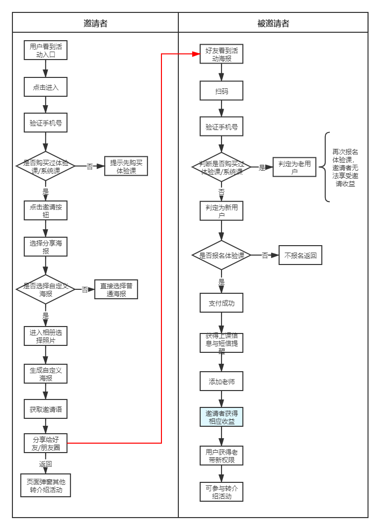 首先,火花思維的轉(zhuǎn)介紹活動(dòng)路徑都非常清晰,基本都是“點(diǎn)擊邀請——制作分享海報(bào)——分享——好友購課——用戶領(lǐng)取獎(jiǎng)勵(lì)”這樣的路徑,用戶對于自己需要干什么比較清楚。