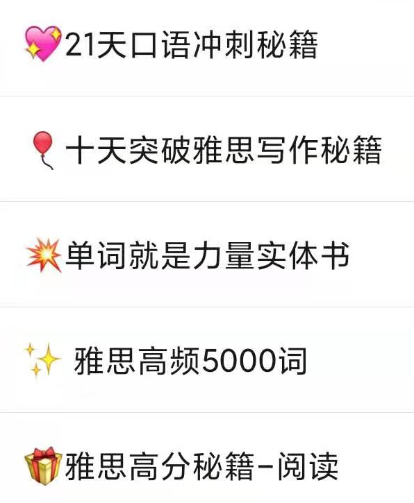 3.作為誘點的,有些是內部老師自己的資料,比如說教雅思的英語老師,就有“雅思高頻5000詞”,是他自己經驗總結出來的。