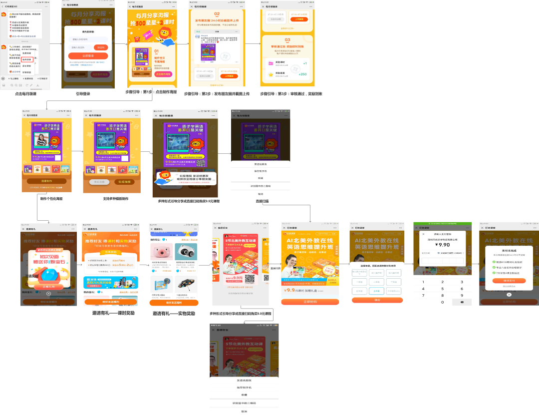 1.用戶執(zhí)行阻力較大,體現(xiàn)在必須制作個(gè)性化海報(bào),上傳24小時(shí)后截圖,還必須通過(guò)審核。建議每一步增加激勵(lì)反饋,領(lǐng)取星星的方式,或許可以增加用戶的行為動(dòng)力;