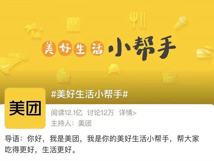 當(dāng)下#美好生活小幫手#話題閱讀量已超12億,討論量達12萬+,美團是如何觸動公眾情緒,傳透品牌新形象?我們不妨深扒下!