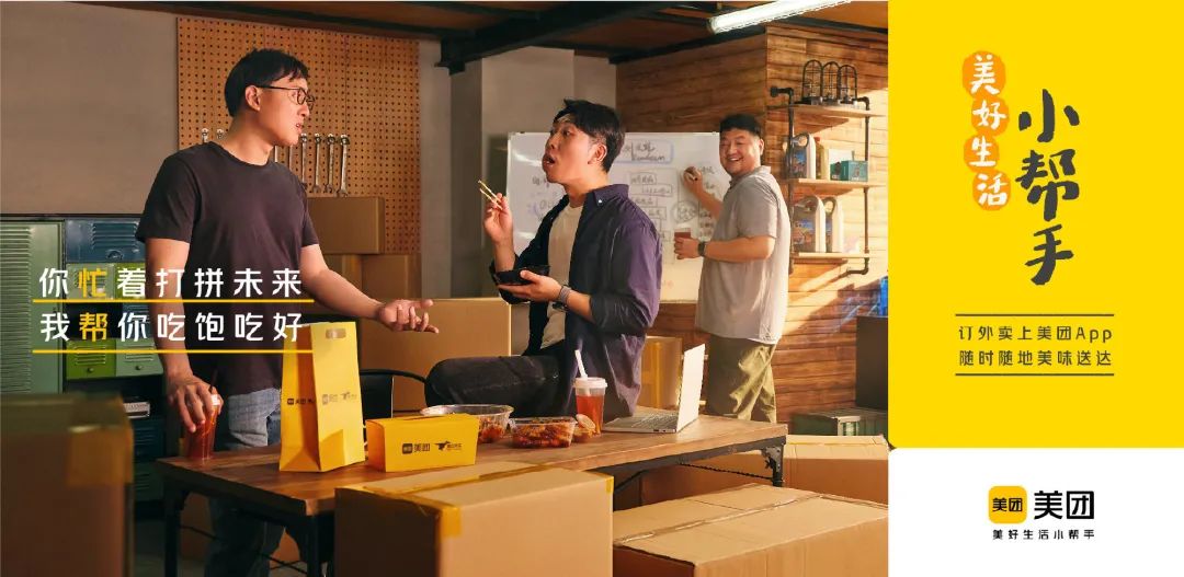 基于對大眾“各種忙”生活狀態(tài)的洞察,整個品牌升級活動以“你忙我?guī)汀睘闇贤c,美團化身為“生活小幫手”,為大家的美好生活加油助力,將美好生活變成日常,觸動大眾的情緒,最大化激發(fā)品牌和用戶的共情力。