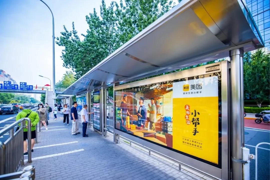 同時,在線下,美團在寫字樓、地鐵、公交站等日常生活必經(jīng)之處進行投放,增加曝光的同時,也讓影片等物料傳達的“你忙我?guī)汀钡钠放苾r值信息點投射到現(xiàn)實之中,沉浸式的場景體驗,讓用戶對美團「美好生活小幫手」的新形象記憶更為深刻。