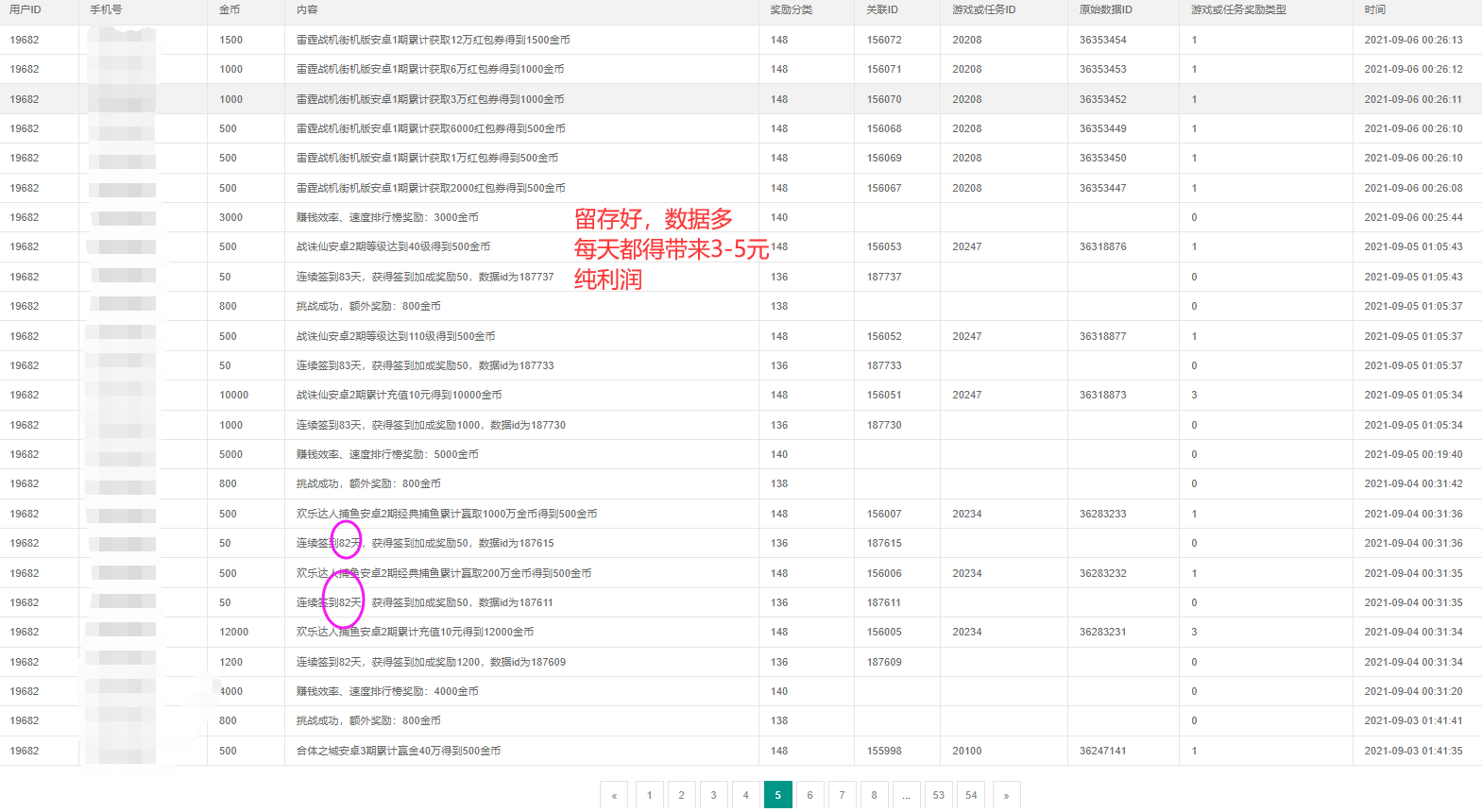 眾人幫很多任務(wù)都只能做一次,因?yàn)橛脩?hù)只有一個(gè)手機(jī)號(hào)?!居螒虻倪壿媱t完全不同,某款游戲的老用戶(hù),通過(guò)一鍵激活,繼續(xù)參與領(lǐng)獎(jiǎng),不少玩家可以在只是玩一款游戲,就產(chǎn)出四五百利潤(rùn)的案例很多?!?/p>