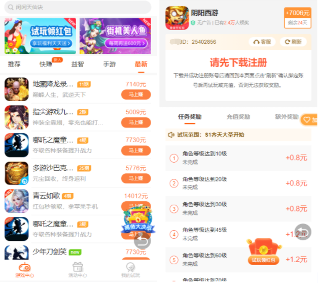 4)每款游戲都配有(額外獎(jiǎng)勵(lì)),活動(dòng)成本由每個(gè)游戲商承擔(dān)。我們只需要負(fù)責(zé)引流,商家來(lái)為運(yùn)營(yíng)花錢(qián),不斷提高我們APP的變現(xiàn)能力。