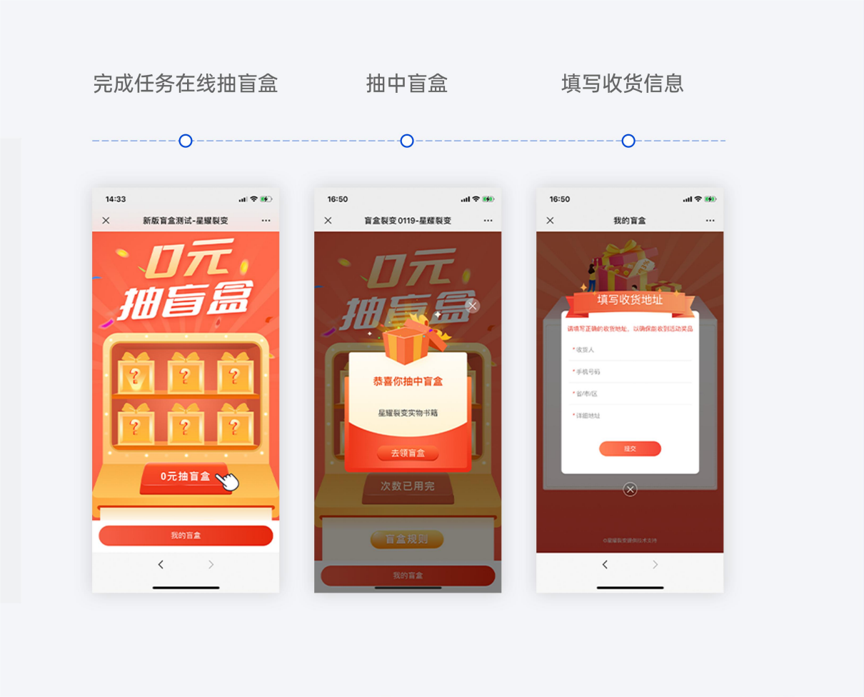 3.盲盒開獎(jiǎng):盲盒限時(shí)抽,獎(jiǎng)品設(shè)置為春季新品(推薦盲盒營(yíng)銷)