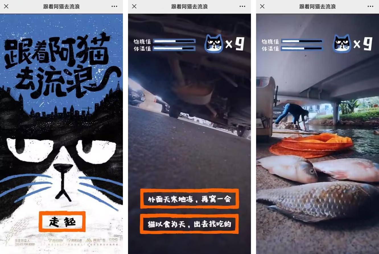 活動亮點(diǎn):這是由騰訊公益推出的互動視頻H5案例,一只流浪貓要經(jīng)過多少生死攸關(guān)的艱難險阻才能擁有一個溫暖的家?H5以第一視角帶領(lǐng)用戶進(jìn)入情景,沉浸式的體驗,每次選擇錯誤就會當(dāng)場命隕,跳轉(zhuǎn)到流浪貓的死因介紹,然后來到帶著天使光圈的最后界面,瀏覽保護(hù)流浪貓的倡議,可以選擇復(fù)活或捐款。復(fù)活后命數(shù)減一條并繼續(xù)重重關(guān)卡。實景的城市讓用戶更加理解流浪貓每天的提心吊膽,要靠九條命才能活下去。詳細(xì)表現(xiàn)流浪貓許多不為人知的死因,每次做錯選擇走向死亡的呻吟和慘叫都讓人心疼不已,激發(fā)用戶保護(hù)欲。
