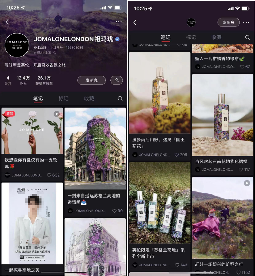 祖瑪瓏在小紅書超過10萬+篇筆記,官方賬號(hào)有12.4萬的粉絲。主要以產(chǎn)品宣傳為主,有香水、香氛等產(chǎn)品為,每一篇都很有調(diào)性,符合高端品牌的形象。