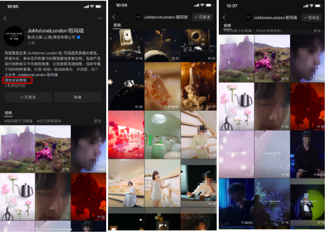祖瑪瓏在是視頻號(hào)主頁直接放置了企微的信息,點(diǎn)擊即可添加。視頻主要的內(nèi)容是以、新品促銷、產(chǎn)品推薦、樹立品牌形象為主。