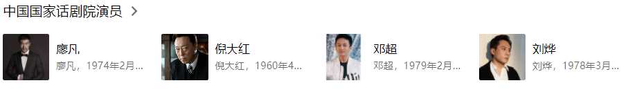 國家話劇院里幾乎涵蓋了大半個娛樂圈的實力派,比如唐國強、李雪健、黃磊、胡歌、劉丹、劉燁、佟大為、陳建斌、寇振海、倪大紅、 姜武、李冰冰 等人。