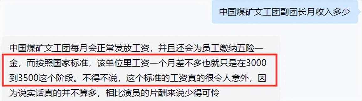 網(wǎng)傳中國煤礦文工團副團長的月工資也在3千元左右。