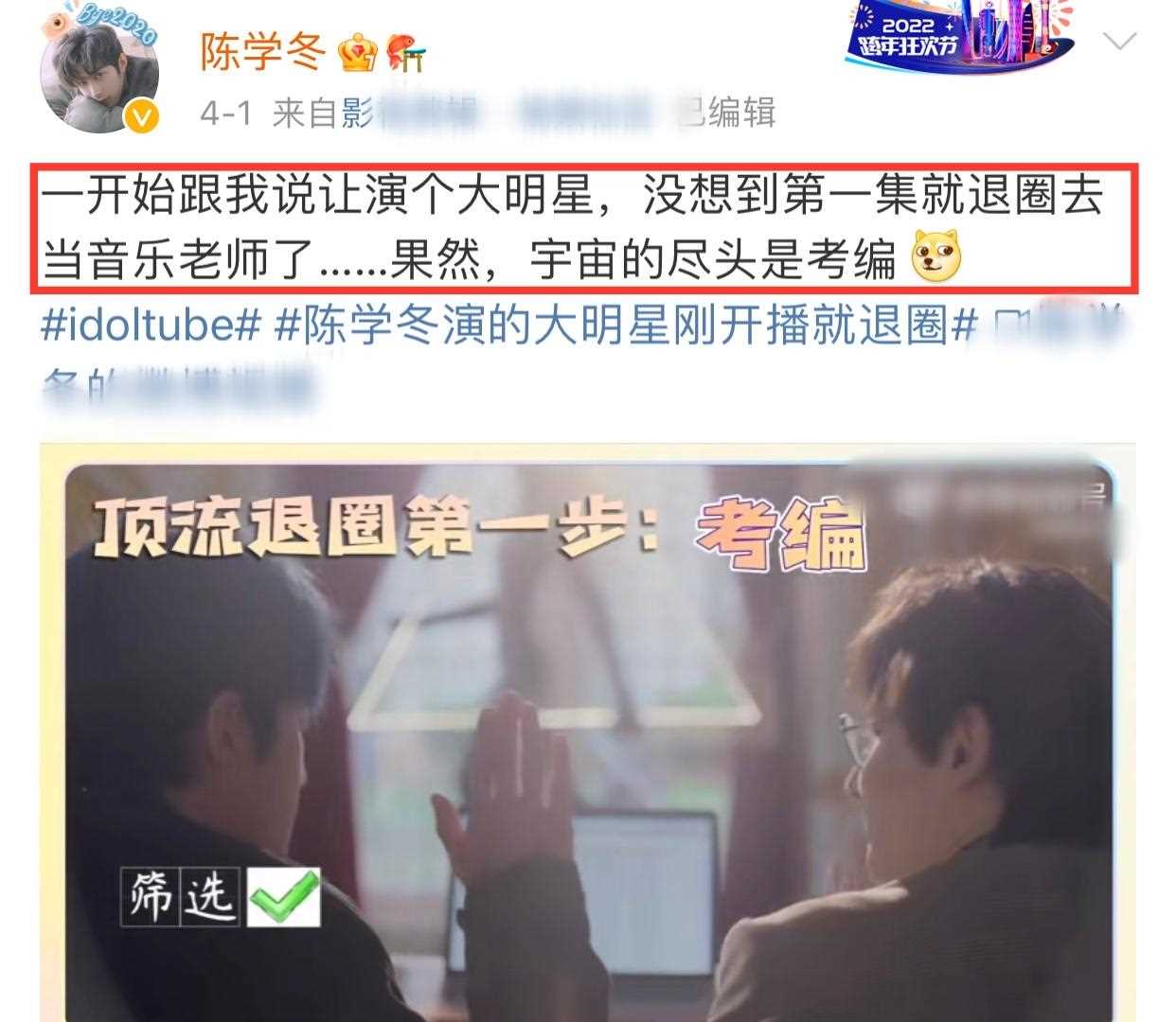 陳學(xué)冬在熱播劇《原來是老師啊!》里面飾演一位退圈的頂流男星,他辭職后面臨卡里余額不足等問題,便決定考編當(dāng)老師,求一個安穩(wěn)的工作。