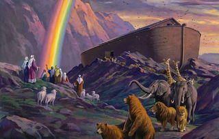 在洪水過(guò)后,諾亞方舟擱淺在了阿勒山上,最后,上帝以彩虹為立約的記號(hào),不再因人的緣故詛咒大地,并使各種生物存留永不停息。