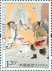 直到34歲才中了秀才。他的岳父胡屠戶是個趨炎附勢、嫌貧愛富的人,對女婿感到很不滿意,在范進(jìn)面前趾高氣揚,粗野狂暴,范進(jìn)也只是唯唯連聲、低聲下氣。