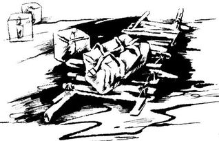 荊軻用手一揚,那只藥袋就飛到一邊去了。 就在這一眨眼的工夫,秦王政往前一步,拔出寶劍,砍斷了荊軻的左腿。