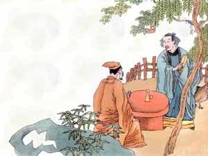 一日,關(guān)羽、張飛不在,玄德(就是劉備)正在后園澆菜,許褚、張遼帶了數(shù)十個(gè)人到菜園里對劉備說:“丞相有命,請使君便行?!?/p>
