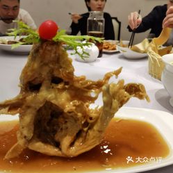其他名菜還有蟹黃魚翅、芙蓉干貝、燒海參、烤大蝦、炸蠣黃和清蒸加吉魚等。濟南派則以湯著稱,輔以爆、炒、燒、炸,菜肴以清、鮮、脆、嫩見長。