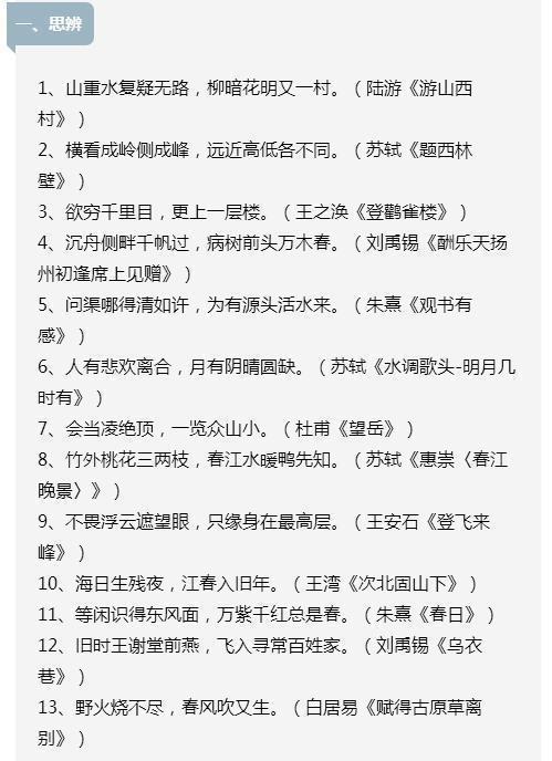 1.與天地兮比壽,與日月兮齊光------戰(zhàn)國.楚.屈原<<;涉江>> 2.路漫漫其修遠(yuǎn)兮,吾將上下而求索------戰(zhàn)國.屈原.<<;離騷>> 3.舉世皆濁我獨(dú)清,眾人皆醉我獨(dú)醒------戰(zhàn)國.屈原<<;漁夫>> 4.亦余心之所善兮,雖九死其猶未悔------屈原<<;離騷>> 5.老驥伏櫪,志在千里;烈士暮年,壯心不已------三國.魏.曹操<<;龜雖壽>> 6.健兒須快馬,快馬須健兒------北朝民歌.<<;折楊柳歌辭>> 7.刑天舞干戚,猛志固常在------晉.陶淵明<<;讀山海經(jīng)十三首>> 8.直如朱絲繩,清如玉壺冰------南朝.宋.鮑照<<;代白頭吟>> 9.疾風(fēng)知?jiǎng)挪荩迨幾R(shí)誠臣------唐.李世民<<;賜蕭禹>> 10.愿君學(xué)長(zhǎng)松,慎勿作桃李------唐.李白<<;贈(zèng)韋侍御黃活裳二首>> 11.時(shí)窮節(jié)乃現(xiàn),一一垂丹青------宋.文天祥<<;正氣歌>> 12.生當(dāng)作人杰,死亦為鬼雄------宋.李清照<<;絕句>>(<<;烏江>> 13.長(zhǎng)安何處在,只在馬蹄下------唐.岑參<<;憶長(zhǎng)安曲二章寄龐催>> 14.莫道桑榆晚,微霞尚滿天------唐.劉禹錫<<;酬樂天詠志見示>> 15.大道如青天,我獨(dú)不得出------唐.李白<<;行路難>> 16.少年心事當(dāng)拂云------唐.李賀<<;致酒行>> 17.一片冰心在玉壺------唐.王昌齡<<;芙蓉樓送辛漸>> 18.長(zhǎng)風(fēng)破浪會(huì)有時(shí),直掛云帆濟(jì)滄海------唐.李白<<;行路難>> 19.天生我材必有用,千金散盡還復(fù)來------唐.李白<<;將進(jìn)酒>> 20.安能摧眉折腰事權(quán)貴,使我不得開心顏------唐.李白<<; 夢(mèng)游天姥吟留別>> 21.新松恨不高千尺,惡竹應(yīng)須斬萬竿------唐.杜甫<<;將赴成都草堂途中有作先寄嚴(yán)鄭公>> 22.千淘萬漉雖辛苦,吹盡狂沙始到金------唐.劉禹錫<<;浪淘沙>> 23.時(shí)人莫小池中水,淺處不妨有臥龍------唐.竇庠<<;醉中贈(zèng)符載>> 24.寧可枝頭抱香死,何曾吹落北風(fēng)中------宋.鄭思肖<<;畫菊>> 25.立志欲堅(jiān)不欲銳,成功在久不在速------宋.張孝祥<<;論治體札子.甲申二月九日>> 26.人生自古誰無死,留取丹心照汗青------宋.文天祥<<;過零丁洋>> 27.粉身碎骨渾不怕,要留青白在人間------明.于謙<<;石灰吟>> 28.不要人夸顏色好,只留清氣滿乾坤------元.王冕<<;墨梅>> 29.千磨萬擊還堅(jiān)勁,任爾東西南北風(fēng)------清.鄭燮<<;竹石>> 30.落紅不是無情物,化作春泥更護(hù)花------清.龔自珍<<;己亥雜詩>> 31.濁酒難銷憂國淚,救時(shí)應(yīng)仗出群才------清.秋瑾<<;黃海舟中日人索句并見日俄戰(zhàn)爭(zhēng)地圖>>。