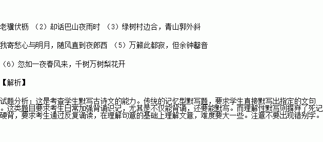 (4)我又一次送走知心的好友,青草代表我的深情。