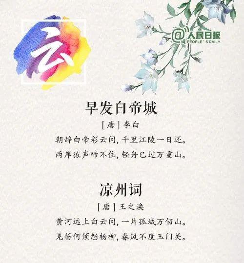 2.遙知不是雪,為有暗香來 3.千里黃云白日,北風(fēng)吹雁雪紛紛 4.晚來天欲雪,能飲一杯無? 5.北風(fēng)卷地百草折,胡天八月即飛雪 6.大雪滿弓刀 7.柴門聞吠,風(fēng)雪夜歸人 8.窗含西嶺千秋雪,門泊東吳萬里船 9.晨起開門雪滿山,雪晴云淡日光寒 10.寒川消積雪,凍浦漸通流 11.都城十日雪,庭戶皓已盈 12.大雪紛紛何所有,明月與我何相見 13.草枯鷹眼疾,雪盡馬蹄輕 14.山回路轉(zhuǎn)不見君,雪上空留馬行處 15.夜深知雪驟,時聞?wù)壑衤? 16.云橫秦嶺千秋雪,雪擁藍關(guān)馬不前 17.殘雪壓枝猶有橘,凍雪驚筍欲抽芽 18.三巴春霽雪初消,百折千回向東去 19.青海長云暗雪山,孤城遙望玉門關(guān) 20.燕山雪花大如席,紛紛吹落軒轅臺 21.大漠沙如雪,燕山月似鉤 22.梅須遜雪三分白,雪卻輸梅一段香 23.千里冰封,萬里雪飄 雨: 自在飛花輕似夢,無邊絲雨細(xì)如愁。——宋·秦觀《浣溪沙·漠漠輕寒上小樓》 風(fēng)雨凄凄,雞鳴喈喈。