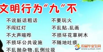 14.讓我們一起來:關(guān)心集體,愛護(hù)公物,保護(hù)環(huán)境! 15.讓我們告別不文明的行為。 16.文明是彼此溝通的橋梁。