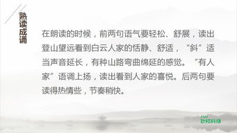 譯文:沿著彎彎曲曲的小路上山,在那白云深處居然還有人家。停下馬車(chē)是因?yàn)橄矏?ài)深秋楓林的晚景,楓葉秋霜染過(guò),艷比二月春花。