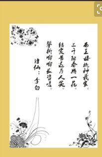 墨梅 王冕 我家洗硯池邊樹,朵朵花開淡墨痕. 不要人夸好顏色,只留清氣滿乾坤. 早 梅 張謂 一樹寒梅白玉條,回臨村路傍溪橋. 不知近水花先發(fā),疑是經(jīng)冬雪未銷. 墨梅 居簡 莫恨丹青廢畫工,不須求異只須同. 玉容不及寒鴉色,故托緇塵異漢宮. 早梅 齊已 萬木凍欲折,孤根暖獨(dú)回. 村前深雪里,昨夜一 枝開. 墨 梅 張臬 山邊幽谷水邊村,曾被疏花斷客魂. 猶恨東風(fēng)無意思,更吹煙雨暗黃昏. 早梅 李公明 東風(fēng)才有又西風(fēng),群木山中葉葉空. 只有梅花吹不盡,依然新白抱新紅. 墨梅 趙秉文 畫師不作粉脂面,卻恐傍人嫌我直. 相逢莫道不相識,夏馥從來琢玉人. 憶梅 李商隱 定定住天涯, 依依向物華. 寒梅最堪恨, 常作去年花. 白梅 王冕 冰雪林中著此身,不同桃李混芳塵. 忽然一夜清香發(fā),散作乾坤萬里春 梅 王琪 不受塵埃半點(diǎn)侵,竹籬茅舍自甘心. 只因誤識林和靖,惹得詩人說到今. 與薛肇明弈棋賭梅花詩輸一首 王安石 華發(fā)尋春喜見梅,一株臨路雪倍堆. 鳳城南陌他年憶,香杳難隨驛使來. 梅 貢性之 眼前誰識歲寒交,只有梅花伴寂寥. 明月滿天天似水,酒醒聽徹玉人簫. 梅花 王安石 墻角數(shù)枝梅,凌寒獨(dú)自開. 遙知不是雪,為有暗香來. 梅花 庚信 當(dāng)年臘月半,已覺梅花闌. 不信今春晚,俱來雪里看. 真適園梅花盛放 王 鏊 花間小坐夕陽遲,香雪千枝與萬枝. 自入春來無好句, 杖藜到此忽成詩. 梅花絕句 陸游 聞道梅花坼曉風(fēng),雪堆遍滿四山中. 何方可化身千億,一樹梅花一放翁. 《雜詩》之一 王維 君自故鄉(xiāng)來,應(yīng)知故鄉(xiāng)事. 來日欹穸前,寒梅著花未. 楊柳枝詞 劉禹錫 塞北梅花羌笛吹,淮南桂樹小山詞. 請君莫湊前朝曲,聽唱新翻楊柳枝. 新栽梅 白居易 池邊新栽七株梅,欲到花時(shí)點(diǎn)檢來. 莫怕長洲桃李嫉,今年好為使君開. 初識梅花 盧撰 江北不如南地暖,江南好斷北人腸. 胭脂桃頰梨花粉,共作寒梅一面妝. 十一月后庭花盛開之二 蔡襄 日暖香繁巳盛開,開時(shí)曾達(dá)千百回. 春風(fēng)豈是多情思,相伴花前去又來. 次韻中玉早梅 黃庭堅(jiān) 折得寒香不露機(jī),小穸斜日兩三枝. 羅帷翠葉深調(diào)護(hù),已被游蜂圣得知. 梅花絕句 陸游 當(dāng)年走馬錦西城,曾為梅花醉似泥. 二十里中香不斷,青羊?qū)m到浣花溪. 紅 梅 蘇軾 年年芳信負(fù)紅梅,江畔垂垂又欲開. 珍重多情關(guān)伊令,直和根撥送春來. 紅梅 王十朋 桃李莫相妒,夭姿元不同. 猶余雪霜態(tài),未肯十分紅. 梅花絕句之二 陸游 幽谷那堪更北枝,年年自分著花遲. 高標(biāo)逸韻君知否,正是層冰積雪時(shí). 嶺上紅梅 范大成 霧雨胭脂照松竹,江面春風(fēng)一枝足. 滿城桃李各焉然,寂寞傾城在空谷. 梅花絕句之三陸游 雪虐風(fēng)號愈凜然,花中氣節(jié)最高堅(jiān). 過時(shí)自會飄零去,恥向東君更乞憐. 題梅花圖 楊無咎 忽見寒梅樹,花開漢水濱. 不知春色早,疑是弄珠人. 探梅 楊萬里 山間幽步不勝奇,正是深夜淺暮時(shí). 一枝梅花開一朵,惱人偏在最高枝. 圣恩寺看梅 周永年 眾香國里人來去,花信風(fēng)中鳥倒懸. 更喜水光相映發(fā),橫斜疏影托波來. 雪梅之一 盧梅坡 有梅無雪不精神,有雪無梅俗了人. 日暮詩成天又雪,與梅并作十分春. 題畫梅 李方膺 揮毫落紙墨痕新,幾點(diǎn)梅花最可人. 愿借天風(fēng)吹得遠(yuǎn),家家門巷盡成春. 雪梅之二 盧梅坡 梅雪爭春未肯降,騷人擱筆費(fèi)評章. 梅須遜雪三分白,雪卻輸梅一段香 . 嶺梅 張道洽 到處皆詩境,隨時(shí)有物華. 應(yīng)酬都不暇,一嶺是梅花. 觀梅有感 劉因 東風(fēng)吹落戰(zhàn)塵沙,夢想西湖處士家. 只恐江南春意減,此心元不為梅花. 贈范曄 陸凱 折梅逢驛使,寄與隴頭人. 江南無所有,聊贈一枝春. 《紅樓夢》訪妙玉乞紅梅 曹雪芹 酒未開樽句未裁,尋春問臘到蓬萊. 不求大士瓶中露,為乞嫦娥檻外梅. 入世冷桃紅雪去,離塵香割紫云來. 槎椏誰惜詩肩瘦,衣上猶沾佛院苔. 《紅樓夢》詠紅梅花 (花字) 曹雪芹 疏是枝條艷是花,春妝兒女竟奢華. 閑廳曲檻無余雪,流水空山有落霞. 幽夢冷隨紅袖笛,游仙香泛絳河槎. 前身定是瑤臺種,無復(fù)相疑色相差. 《紅樓夢》詠紅梅花(紅字) 曹雪芹 桃未芳菲杏未紅,沖寒先已笑東風(fēng). 魂飛庾嶺春難辨,霞隔羅浮夢未通. 綠萼添妝融寶炬,縞仙扶醉跨殘虹. 看來豈是尋常色,濃淡由他冰雪中. 《紅樓夢》詠紅梅花 (梅字) 曹雪芹 白梅懶賦賦紅梅,逞艷先迎醉眼開. 凍臉有痕皆是血,酸心無恨亦成灰. 誤吞丹藥移真骨,偷下瑤池脫舊胎. 江北江南春燦爛,寄言蜂蝶漫疑猜. 早 梅 柳宗元 早梅發(fā)高樹,回映楚天碧. 朔風(fēng)飄夜香,繁霜滋曉白. 欲為萬里贈,杳杳山水隔. 寒英坐銷落,何用慰遠(yuǎn)客. 十一月中旬至扶風(fēng)界見梅花 李商隱 匝路亭亭艷,非時(shí)裊裊香. 素娥惟與月,青女不饒霜. 贈遠(yuǎn)虛盈手,傷離適斷腸. 為誰成早秀?不待作年芳 寒夜 杜耒 寒夜客來茶當(dāng)酒, 竹爐湯沸火初紅. 尋常一樣穸前月,才有梅花便不同. 雪后梅盛開折置燈下 曾幾 滿城桃李望東君,破蠟紅梅未上春. 窗幾數(shù)枝逾靜好,園林一雪碧清新. 山園小梅 林和靖 唐 眾芳搖落獨(dú)喧妍,占盡風(fēng)情向小園. 疏影橫斜水清淺,暗香浮動月黃昏. 霜禽欲下先偷眼,粉蝶如知合斷魂. 幸有微吟可相狎,不須擅板共金樽. 早梅 南朝·謝燮 迎春故早發(fā),獨(dú)自不疑寒. 畏落