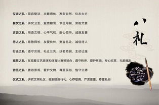 二、內(nèi)涵:八禮:儀表之禮,包括面容整潔、衣著得體、發(fā)型自然、儀態(tài)大方。餐飲之禮,包括講究衛(wèi)生、愛惜糧食、節(jié)儉用餐、食相文雅。