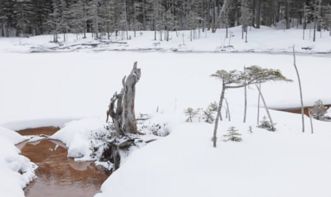 在棕黑色樹干的襯托下,顯得它更加純潔無瑕。在雪的映照下,天也變成了銀色。