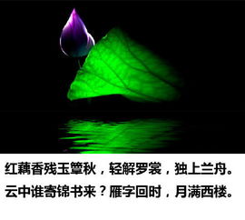 4、雪落凡塵終不見,水滌蒹葭總無痕.若問今秋人何在,但見翠竹香茗聞。