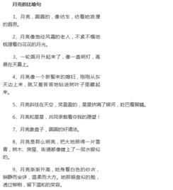 ★月亮斜掛在天空,笑盈盈的,星星擠滿了銀河,眨巴著眼睛。 ★一輪圓月升起來了,像一盞明燈,高懸在天幕上。