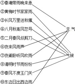 有關(guān)氣候的詩句及詩: 1.“忽如一夜春風(fēng)來,千樹萬樹梨花開” 反映了冷風(fēng)過境時先刮風(fēng)后降水(雪)的天氣變化特征 2.“人間四月芳菲盡,山寺桃花始盛開” 反映了氣溫垂直分布的特點(diǎn),正是因為氣溫隨地勢的上升而降低(地勢每上升1000米,氣溫下降6℃)這一特點(diǎn),才造成了山上、山下的桃花花期早遲不一這種地理現(xiàn)象 3.“東邊日出西邊雨,道是無睛卻有睛” 說明在同一時刻,不同的地方天氣是不相同的。