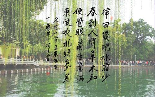 4、一水護(hù)田將綠繞,兩山排闥送青來(lái).——宋.王安石《書(shū)湖陰先生壁》【釋義】 庭院外一條小河保護(hù)著農(nóng)田,并且環(huán)繞著農(nóng)田;兩座大山打開(kāi)門來(lái)為人們送去綠色。5、野曠天低樹(shù),江清月近人。