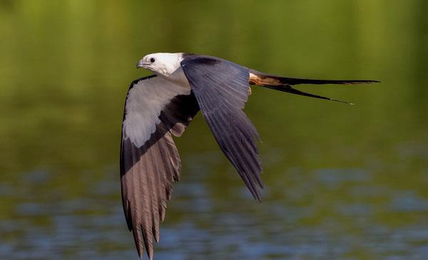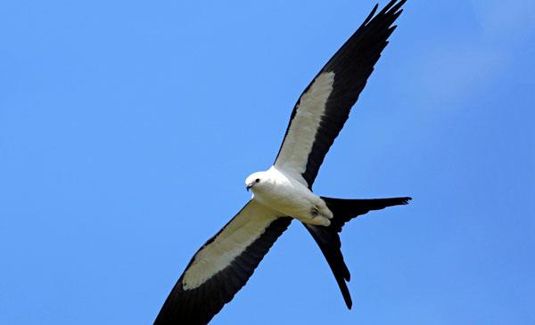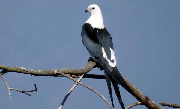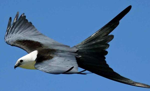 燕尾鳶:別名燕尾鷹_美洲燕尾鳶,為隼形目、鷹科、燕尾鳶屬鳥類,原產(chǎn)于北美洲、南美洲大部分地區(qū)均有分布。野生于海拔2000m以下的低地雨林、沼澤、河流、草地邊有高大樹木的地方。在松林中建巢。1758年命名,共2個亞種。鳴叫聲比較單調(diào),繁殖季節(jié),雄鳥發(fā)出的“克利-克利-克利”三個音節(jié)的聲音,雌鳥則是一個音節(jié)的“克利”,并略顯尖銳。這些發(fā)聲許多場合都能聽到,遇到天敵鳥類或和伴侶交配后,以及希望取得聯(lián)系。遷徙性鳥類,在南美長途跋涉,春天它們返回佛羅里達(dá)州境內(nèi)定居,此時已經(jīng)形成對。