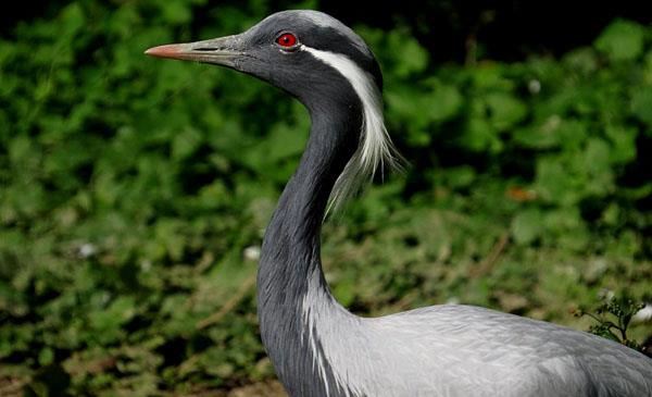 鶴科家族15個(gè)成員中,體型最為嬌小的。眼后形如流蘇的白色長(zhǎng)羽,胸前的蓑羽,紅色的眼睛,使得身形纖長(zhǎng)的它擁有嫻靜優(yōu)雅的氣質(zhì)。傳說(shuō)法國(guó)王后安托瓦內(nèi)特,第一次見(jiàn)到它,覺(jué)得它宛如大家閨秀,所以又稱它閨秀鶴。