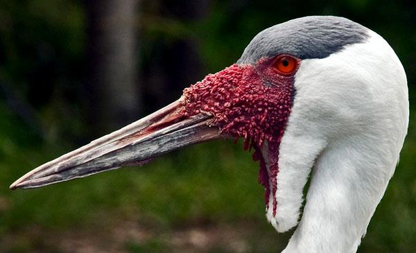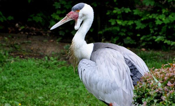 雄鶴裸露的頭頂呈灰色,雌鶴則帶白色。