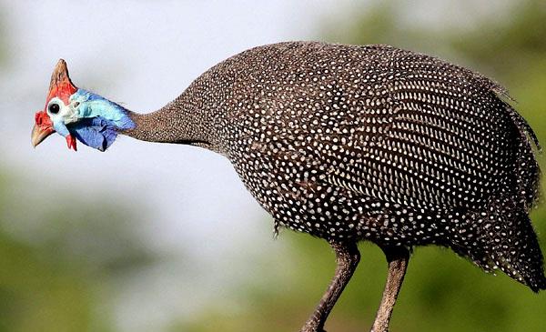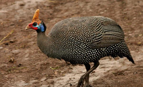 盔珠雞:別名珠雞_珍珠雞_普通珠雞_淺灰珠雞_嘉樂珠雞,為雞形目、珠雞科、珠雞屬鳥類,原產(chǎn)于非洲大部分地區(qū)。棲息地范圍廣泛,從茂密的雨林到半荒漠都有分布,多野生于開闊的灌木林、稀樹草原或農(nóng)田。1758年命名,共9個亞種。它們有非常發(fā)達的馬刺即距,并在打斗中使用,效果斐然。像家雞一樣,強大的爪子可以輕松的刨開土壤,找尋食物。
