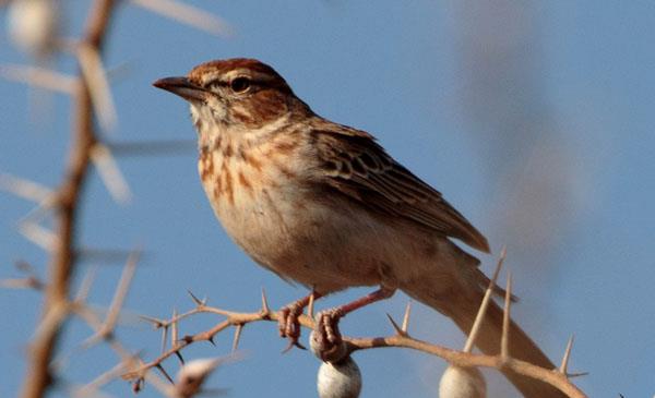 吉勒氏歌百靈:別名吉勒歌百靈,為雀形目、百靈科、歌百靈屬鳥類,原產(chǎn)于非洲中南部埃塞俄比亞、索馬里、肯尼亞。野生于干燥的稀樹草原,和亞熱帶或熱帶低地干燥灌叢。1895年命名。常在地面行走,或振翼作柔弱的波狀飛行。