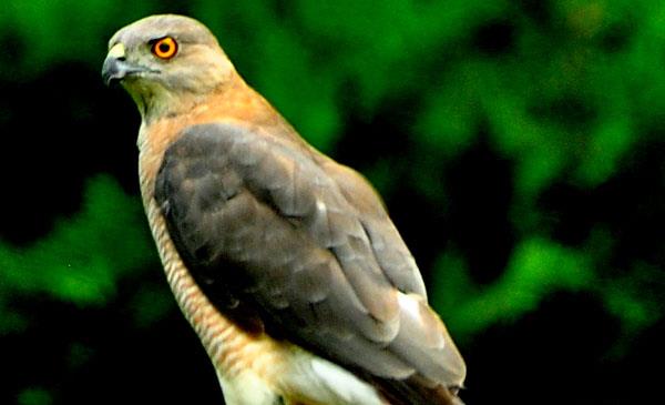 褐耳鷹:別名褐耳蒼鷹_棕耳蒼鷹_褐耳雀鷹,為隼形目、鷹科、鷹屬鳥類,原產(chǎn)于亞洲、非洲,北美洲、歐洲少部分地區(qū)也有分布。非洲至印度地區(qū)分布最多。我國廣東、廣西、海南、貴州、云南、新疆、臺灣有分布。野生于山地和平原森林以及在有稀疏樹木的農(nóng)田、草地、林緣、稀樹草坡、開闊林區(qū)、農(nóng)田、草原和荒漠地帶,常在林中或林緣河流、湖泊等水邊地帶活動,有時也見在公園、果園、村莊、甚至出現(xiàn)在城市的上空。1788年命名,共6個亞種。我國2級重點保護野生動物。