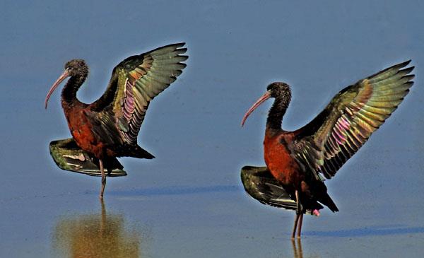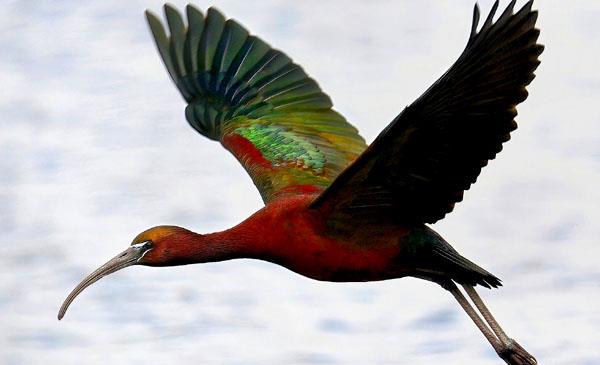 彩鹮:別名,為鸛形目、鹮科、彩鹮屬鳥(niǎo)類(lèi),原產(chǎn)于非洲、歐洲南部及亞洲部分地區(qū)。我國(guó)上海、浙江、福建、廣東等地有分布。野生于淺水湖泊、沼澤、河流、水塘、水淹平原、濕草地、水田、水渠等淡水水域,有時(shí)也到海邊河流入??诤推渌S?。1766年命名。頭部除面部裸出外皆被羽,體羽大部為青銅栗色,嘴長(zhǎng)而下彎,呈黑色。叫聲為帶鼻音的咕噥聲,于巢區(qū)發(fā)出咩咩及咕咕的叫聲。我國(guó)1級(jí)重點(diǎn)保護(hù)野生動(dòng)物。