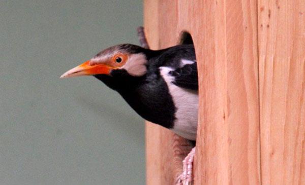 黑白相間的中型椋鳥,?;顒?dòng)于高大的大青樹上,或村寨附近的喬木上或田邊,營巢于高樹上。平原地區(qū)常結(jié)群活動(dòng)。飛行迅速,整群飛行。鳴聲低微而單調(diào)。當(dāng)一只受驚起飛,其他則紛紛響應(yīng),整群而起。