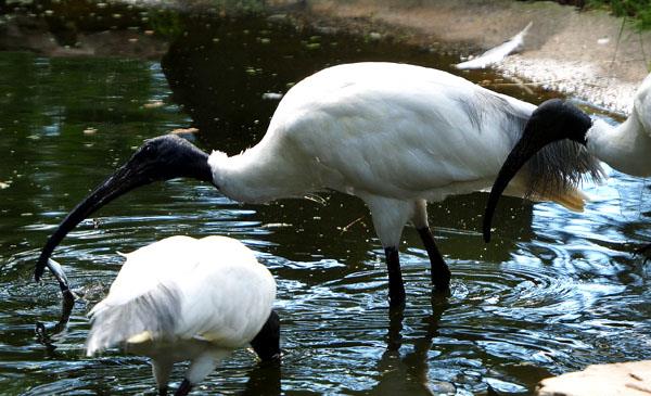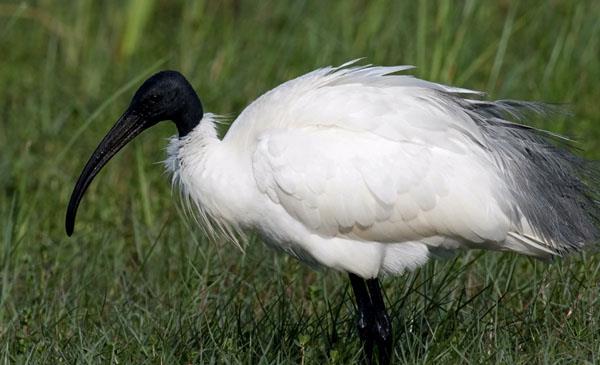 體長(zhǎng)65-75cm,嘴峰13-19cm,單翅34-37cm。大型涉禽。夏季通體的羽毛白色,頭部、頸的上部裸露,呈黑色,有時(shí)點(diǎn)綴有藍(lán)色。背部和前頸的下部有延長(zhǎng)的灰色飾羽,翅膀的下面有裸露的深紅色皮膚斑,并且沿著翅膀的邊緣向下面的兩側(cè)延伸,飛行時(shí)露出的翼尖為黑色。冬季的羽毛與夏羽大體相似,但背部和前頸沒(méi)有延伸的灰色飾羽,翅膀下裸露的皮膚斑變?yōu)槌燃t色。黑色的嘴細(xì)長(zhǎng),并且向下彎曲。虹膜為紅色或紅褐色。腳較短,也是黑色。