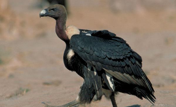 白背禿鷲:別名東方白背禿鷹_印度白背兀鷲,為隼形目、鷲科、兀鷲屬鳥類,原產于亞洲印度、巴基斯坦,的一種瀕危動物。因印度當?shù)貫E用一種名為Diclofenac的獸用消炎藥,這種藥物會長期存留體內,白背禿鷲食用家畜尸體后,就會導致腎臟衰竭死亡。在過去10年里,其種群驟減95%以上。世界瀕危物種,已被聯(lián)合國列入《瀕危野生動物名錄》。
