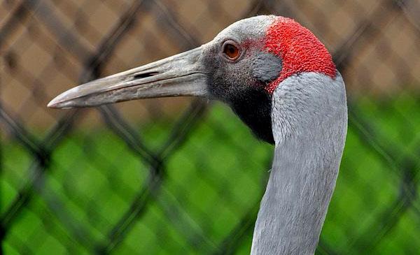 體長(zhǎng)150-160cm。身體顏色為灰色,有著紅色的頭和黑色的下巴垂肉。頭部除了纖細(xì)的黑色羽毛外,其余部分裸露。頭頂和額部呈淡綠色,兩側(cè)和頸項(xiàng)紅色,其他部分體羽灰色。喉部長(zhǎng)有一懸掛著的黑色肉垂,腿和腳黑色。