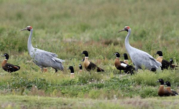 澳洲鶴:別名伴侶鶴,為鶴形目、鶴科、鶴屬鳥類,原產(chǎn)于大洋洲澳大利亞?wèn)|部、北部,和新幾內(nèi)亞低地。野生于大型沼澤、大草原和平原。過(guò)去澳洲鶴的分布幾乎遍及整個(gè)澳大利亞,而它們的繁殖地僅限于澳大利亞北部。我國(guó)扎龍自然保護(hù)區(qū)引種馴養(yǎng)著我國(guó)唯一的一對(duì)澳洲鶴。