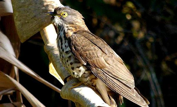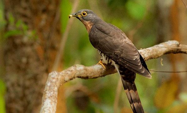 鷹鵑:別名子規(guī)_大鷹鵑_鷹頭杜鵑,為鵑形目、杜鵑科、鷹鵑屬鳥類,原產(chǎn)于亞洲南部、東南部,包括我國在內(nèi)的大部分國家均有分布。野生于海拔1600m以下的山林,冬天常遷移至平原地帶。隱蔽于樹木葉簇中鳴叫,白天或夜間都可聽到。1832年命名,共2個亞種。我國自遼寧以南經(jīng)秦嶺至四川及西藏南部為夏候鳥,在云南和海南為留鳥。鳴聲清脆響亮,為三音節(jié),聲似“貴貴-陽、貴貴一陽”。繁殖期間幾乎整天都能聽見它的叫聲。
