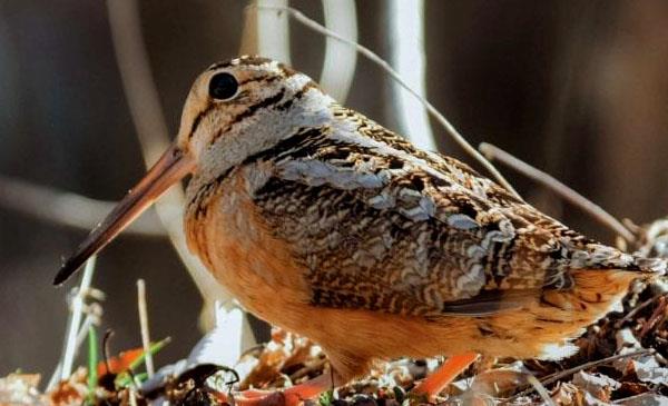 小丘鷸:別名北美丘鷸,為鸻形目、鷸科、丘鷸屬鳥類,原產(chǎn)于北美洲大草原以東地區(qū),棲息于陰暗潮濕、林下植物發(fā)達(dá)、落葉層較厚的闊葉林和混交林中,有時(shí)也見于林間沼澤、濕草地和林緣灌叢地帶。因?yàn)槭澄锏脑?,秋季?huì)飛到美國(guó)南部覓食,但它不是候鳥,只是哪里食物多,就飛去哪里罷了。它身材胖乎乎,較短嘴長(zhǎng)看上去有點(diǎn)像幾維鳥。鷸鳥這一大類共有77種,廣泛分布在世界各地,我國(guó)有38種。它們屬小型涉禽鳥類,多棲息在海岸、沼澤及河川等地,以水生動(dòng)物為食。
