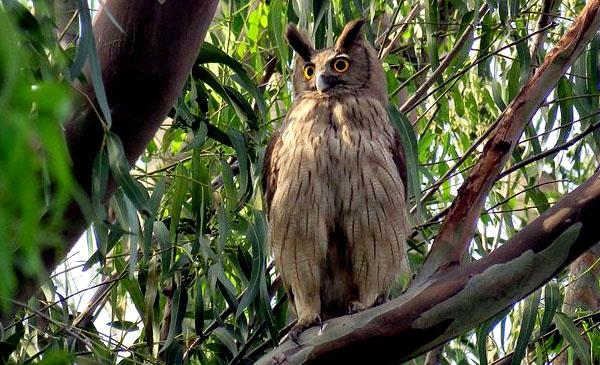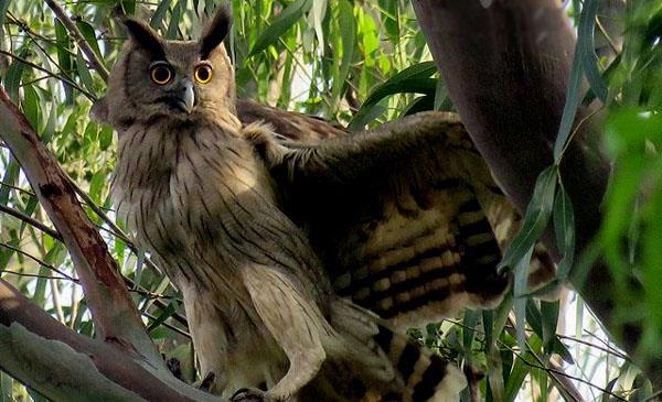 烏雕鸮:別名,為鸮形目、鴟鸮科、雕鸮屬鳥類,原產(chǎn)于亞洲南部,印度、緬甸、孟加拉國(guó)、泰國(guó)和馬來(lái)半島,中國(guó)分布于浙江建德、江西南昌。主要棲息于山地森林中,特別是水源豐富的森林平原地區(qū),常在水域附近棲息,不喜歡在特別干燥和荒漠地區(qū)活動(dòng)。1790年命名,共2個(gè)亞種。