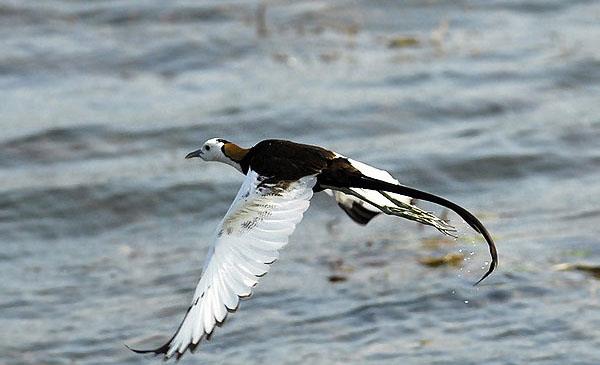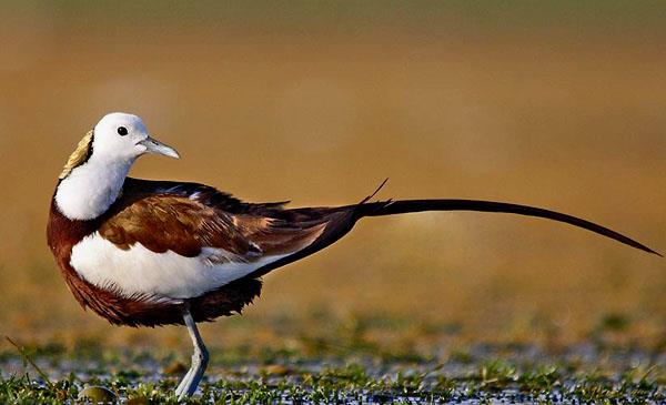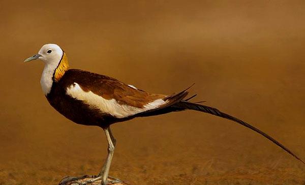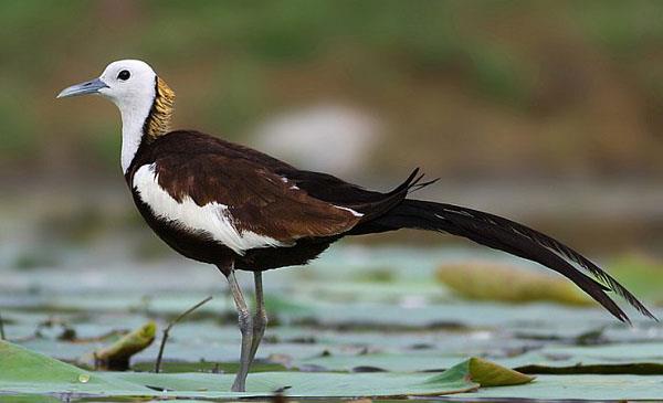 水雉:別名雞尾水雉_長尾水雉,為鸻形目、水雉科、水雉屬鳥類,原產(chǎn)于亞洲南部地區(qū),包括印度、緬甸、泰國、馬來半島、中南半島、菲律賓、印尼、阿曼。偶見于也門、阿富汗、澳大利亞等地。棲息于熱帶及亞熱帶的開放性濕地,通常是富有挺水植物和漂浮植物的淡水湖泊、池塘和沼澤地帶。1786年命名,無亞種。模式產(chǎn)地:菲律賓呂宋島。