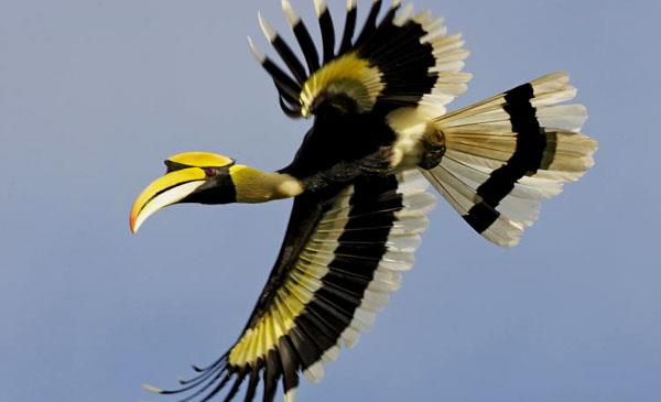 雙角犀鳥:別名大斑犀鳥_印度大犀鳥,為犀鳥目、犀鳥科、角犀鳥屬鳥類,原產(chǎn)于亞洲南部,印度、不丹、柬埔寨、中國、印尼、老撾、緬甸等國。我國僅分布于云南南部西雙版納。棲息于海拔1500m以下的低山和山腳平原常綠闊葉林,尤其喜歡靠近湍急溪流的林中溝谷地帶。1758年命名,共2個(gè)亞種。