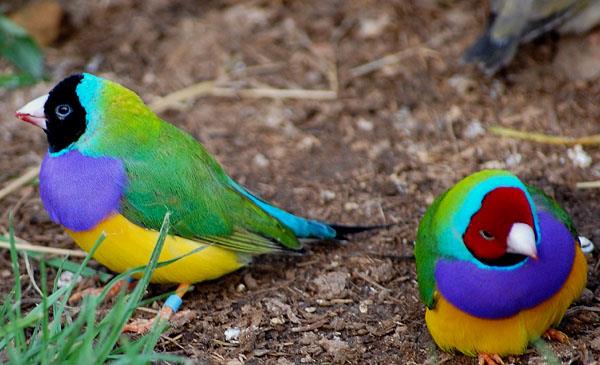 七彩文鳥(niǎo):別名胡錦鳥(niǎo)_五彩文鳥(niǎo)_七彩芙蓉等,為雀形目、梅花雀科、鸚雀屬鳥(niǎo)類(lèi),原產(chǎn)于大洋洲澳大利亞北部、西北部,于1844年發(fā)現(xiàn)并命名。野生于開(kāi)闊的森林、草地邊緣和村落、農(nóng)田附近。由于大量的捕獵以及人類(lèi)活動(dòng)的侵?jǐn)_,原產(chǎn)地的野生數(shù)量已經(jīng)非常稀少,據(jù)估計(jì)數(shù)量不超過(guò)2500只。1959年開(kāi)始澳大利亞政府已經(jīng)禁止七彩文鳥(niǎo)的出口貿(mào)易。